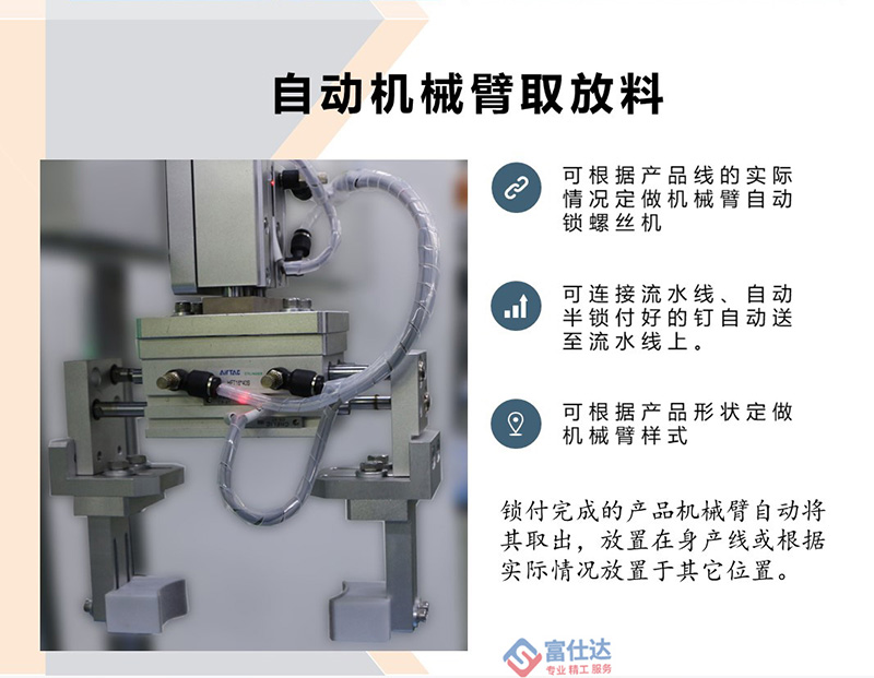 富仕達(dá)擁有獨(dú)立研發(fā)設(shè)計(jì)團(tuán)隊(duì),10多位自動(dòng)化高級(jí)工程師,5000㎡自動(dòng)鎖螺絲機(jī)生產(chǎn)、測(cè)試車(chē)間,專(zhuān)業(yè)售后服務(wù)團(tuán)隊(duì),為客戶提供方案設(shè)計(jì)、設(shè)備制造、操作培訓(xùn)、售后服務(wù)等一站式服務(wù)。 公司將持續(xù)提升技術(shù)創(chuàng)新和產(chǎn)品服務(wù)方面的優(yōu)勢(shì),堅(jiān)持“專(zhuān)業(yè)、精工、服務(wù)”的企業(yè)理念,聚焦于自動(dòng)鎖螺絲設(shè)備生產(chǎn),通過(guò)系統(tǒng)的一站式解決方案,真正的幫助客戶提升效率、降低成本,提升客戶的核心競(jìng)爭(zhēng)力。